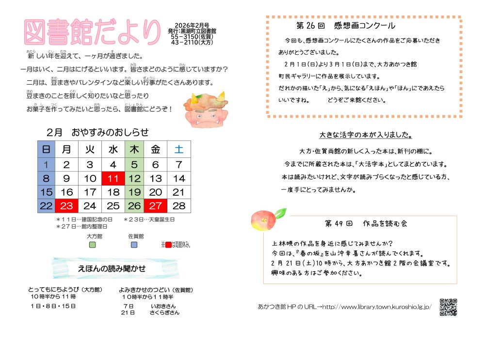 ●図書館だより(2025年12月号) ●図書館だより(2025年11月号) ●図書館だより(2025年10月号) ●図書館だより(2025年9月号) ●図書館だより(2025年8月号) ●図 ... 続きを読む